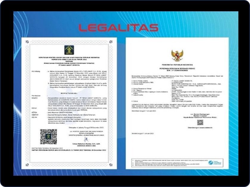 Semua dokumen perusahaan yang menyangkut legalitas dan perijinan lengkap jadi aman